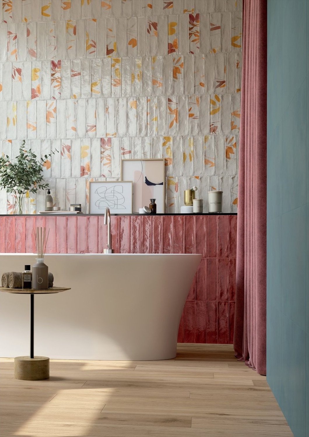 Ambos modelos se presentan como revestimiento cerámico interior de pequeño formato con acabado glossy, que realza el dibujo vegetal mediante reflejos de luz sutiles. Multiforme Ramage es una solución idónea para baños, duchas, frentes de cocina, paredes decorativas y proyectos contract donde el revestimiento actúa como elemento protagonista.