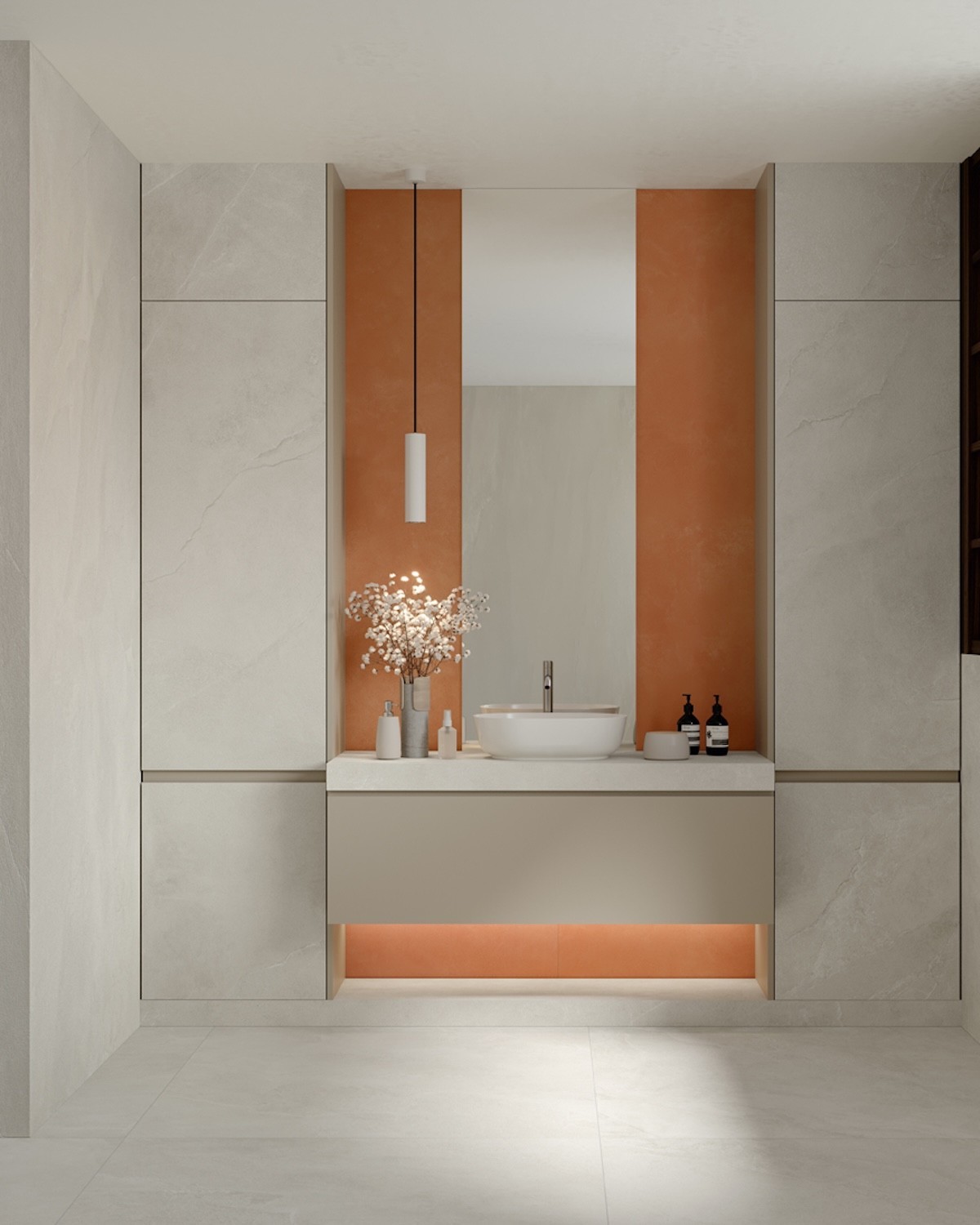 En el panorama actual del diseño, la piedra natural reinterpretada se impone como una de las tendencias más fuertes. The Rock responde a esta corriente aportando un equilibrio entre la nobleza de la materia prima y la precisión tecnológica del porcelánico italiano. Su aspecto pétreo aporta sensación de robustez y naturalidad, mientras que su formato y gama cromática transmiten luminosidad y amplitud visual.
