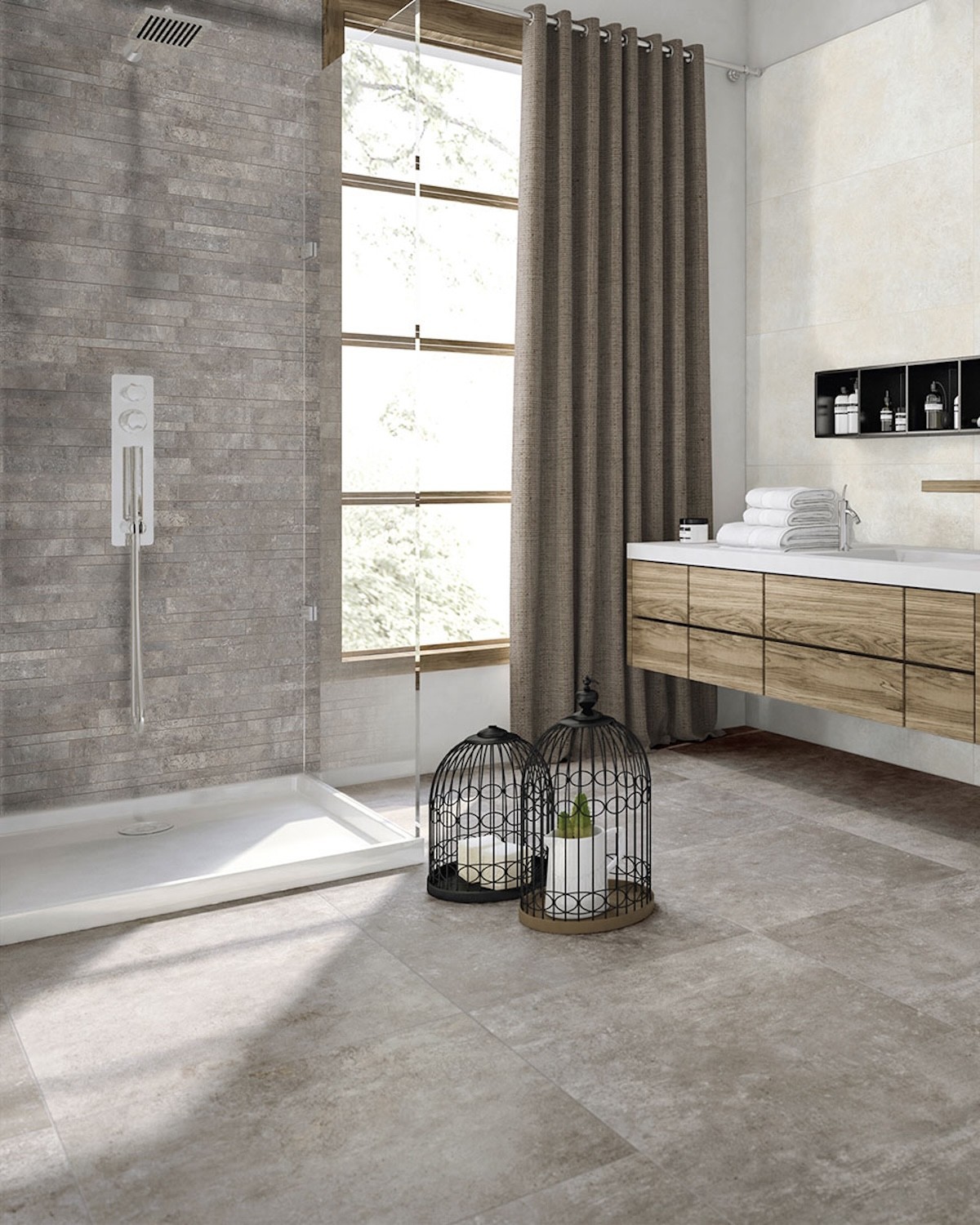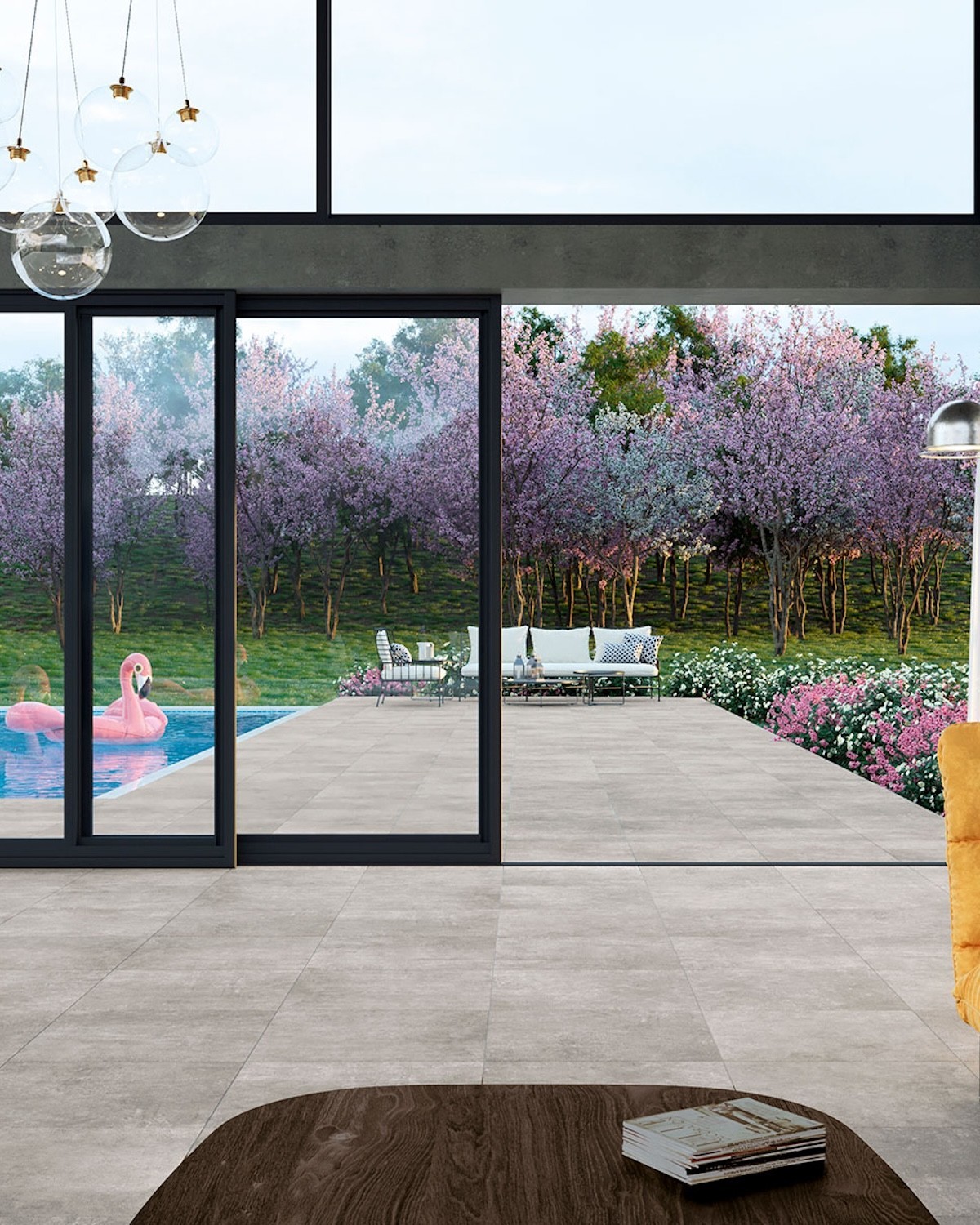 El efecto cemento de Grey Soul se integra perfectamente en los proyectos de diseño contemporáneo, aportando una estética sobria y urbana. Su versatilidad permite combinarlo con madera, metal o piedra, generando espacios elegantes y equilibrados. Ideal para salones, cocinas, baños, zonas wellness, terrazas y locales comerciales, esta colección garantiza continuidad visual entre interior y exterior gracias a la coherencia cromática de sus superficies.