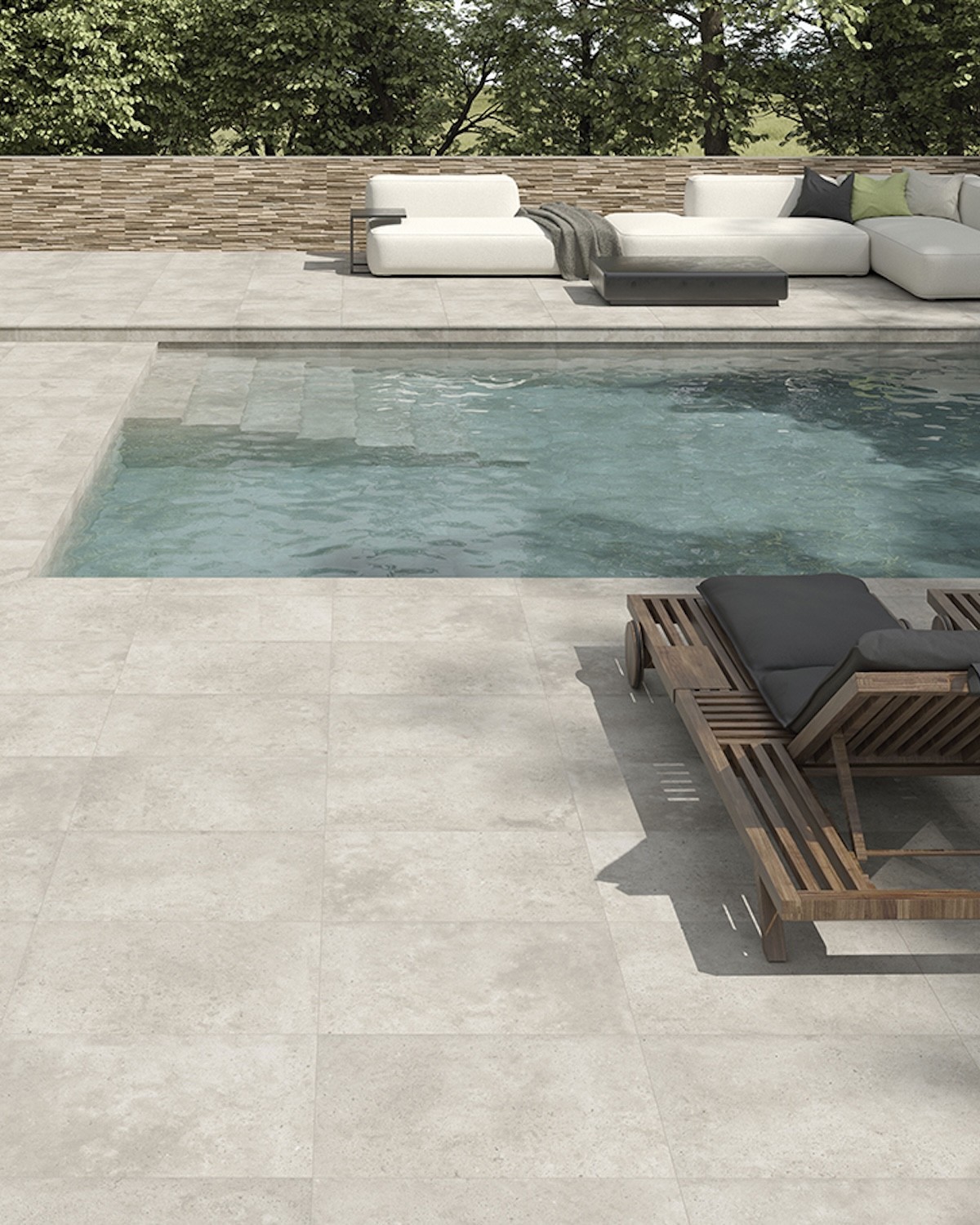 En tant que grès cérame, cette collection offre une excellente résistance et un entretien facile au quotidien. La finition mate renforce l’aspect naturel de la pierre et évite les reflets, ce qui est particulièrement adapté aux espaces extérieurs exposés à la lumière. Autour d’une piscine ou sur une terrasse, Dry Borgogna crée une ambiance premium, minérale et intemporelle.