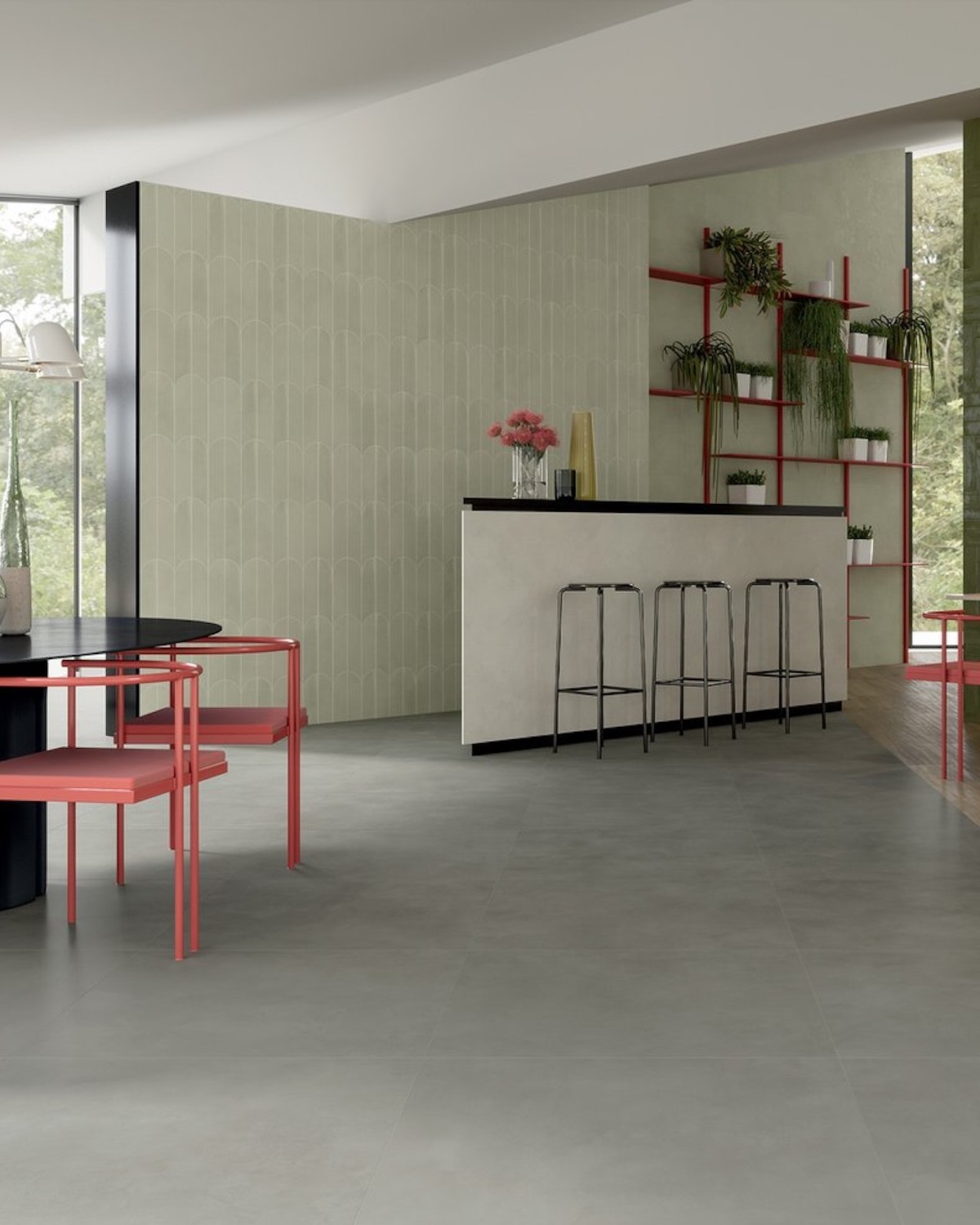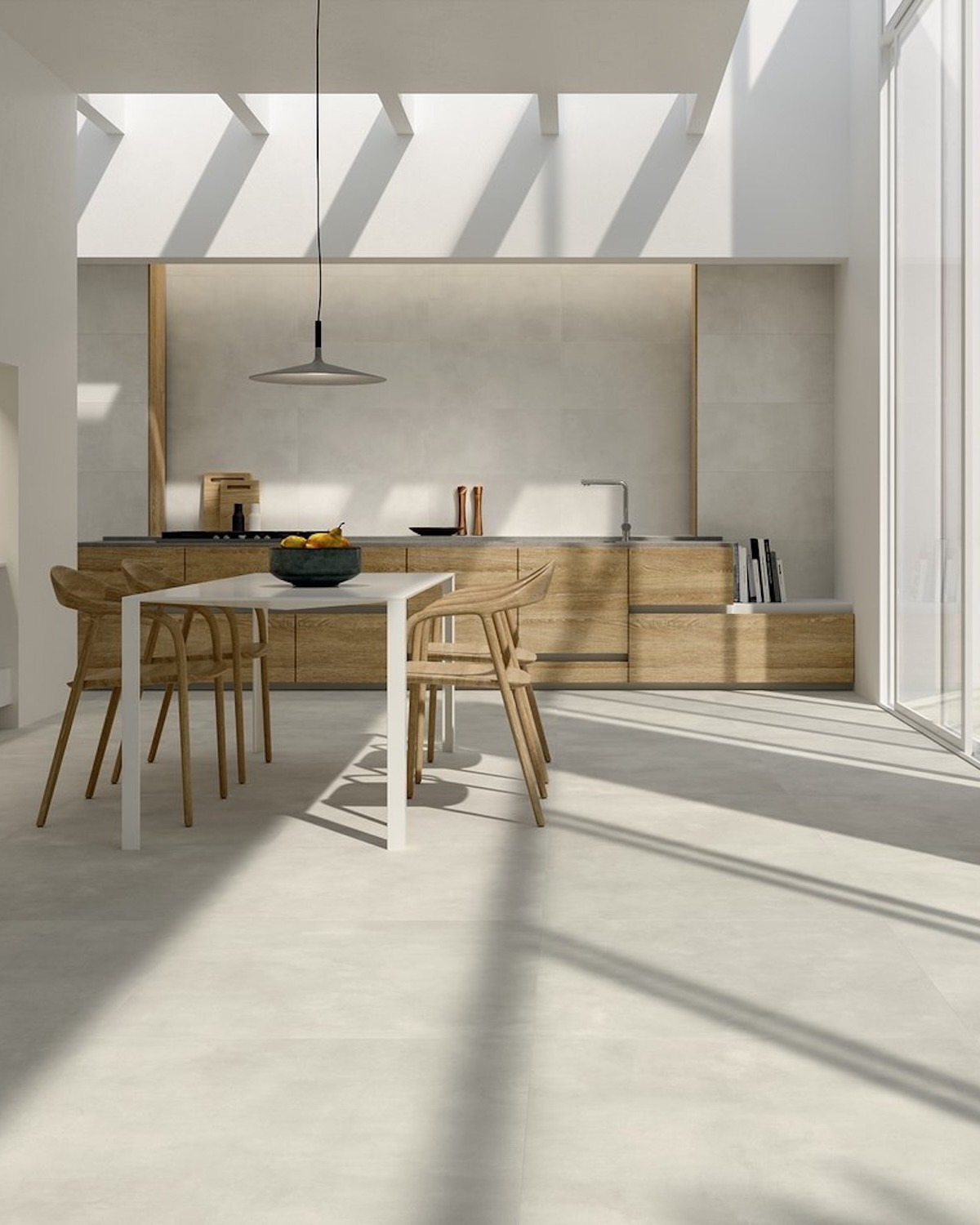 L’identité de Multiforme repose sur une finition mate qui apporte du réalisme et une présence très contemporaine, sans brillance. C’est un carrelage idéal pour obtenir un rendu béton sophistiqué, aussi bien en résidentiel qu’en commercial. Son esthétique équilibrée se combine facilement avec le bois, la pierre naturelle, des meubles aux lignes pures ou des détails métalliques.