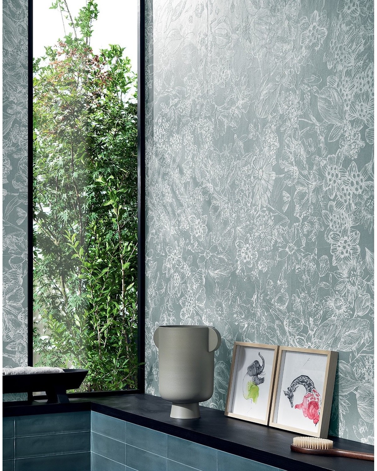 Mirabilia est conçue pour habiller les murs avec un style distinctif, rappelant les papiers peints haut de gamme, mais avec les avantages d’un revêtement en carrelage : stabilité, durabilité et entretien facile. Une solution idéale pour les salles de bains, cuisines, espaces bien-être, hôtels ou tout environnement où le mur devient un élément central du projet.