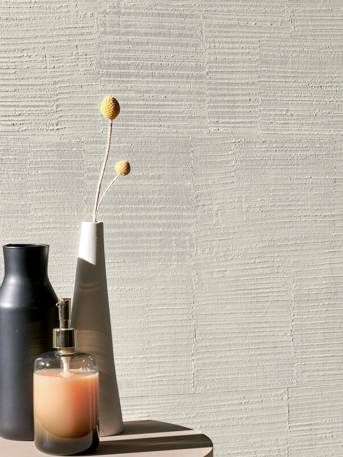 La structure Inciso a été conçue pour créer un effet tridimensionnel fin, associé à une surface douce et agréable au toucher. Ce n’est pas un relief agressif : c’est un travail de texture délicat, qui se révèle en s’approchant, dans la manière dont il capte la lumière et génère des ombres légères. Le mur devient plus architectural, plus travaillé, plus élégant.