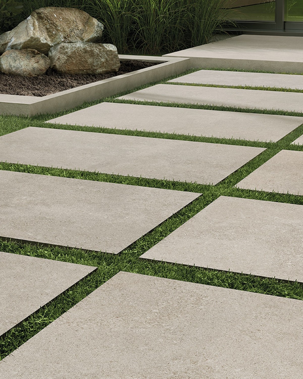 The colour palette is inspired by natural stone and includes four tones: Naturale, Avorio, Sabbia and Perla. Each shade offers its own character — from the warm glow of Avorio to the refined mineral elegance of Perla — making it easy to design harmonious and contemporary outdoor spaces.