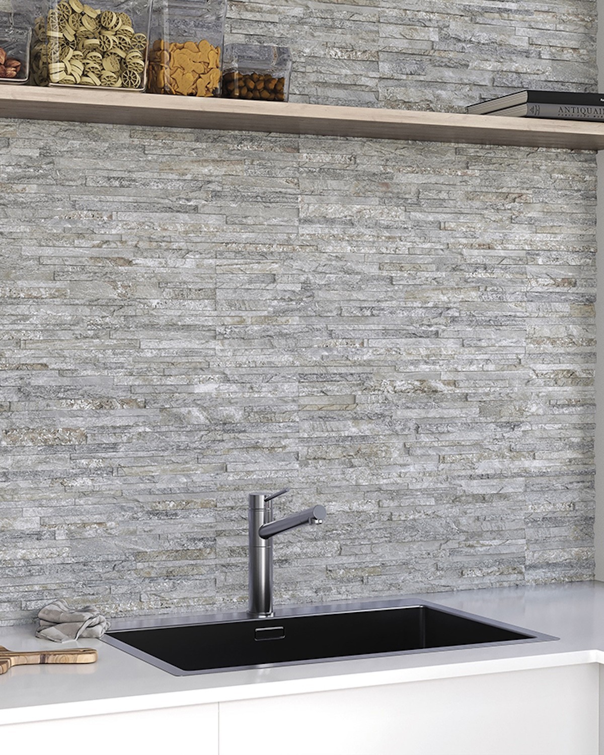 The 38x89 size helps create visually continuous walls with a cleaner, more professional finish, especially on large surfaces where the stone relief becomes a key design element.