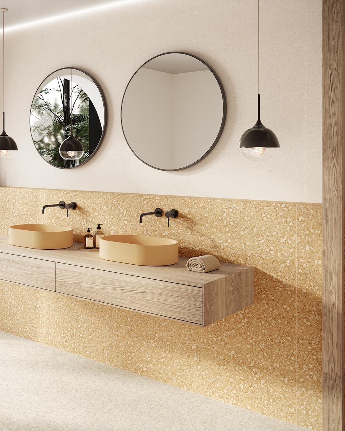 Porcelain terrazzo is once again positioning itself as one of the leading figures in contemporary interior design. Aruma Linen emphasizes the luminosity and organic effect so sought after in contemporary spaces, providing a balance between Mediterranean tradition and minimalist design.