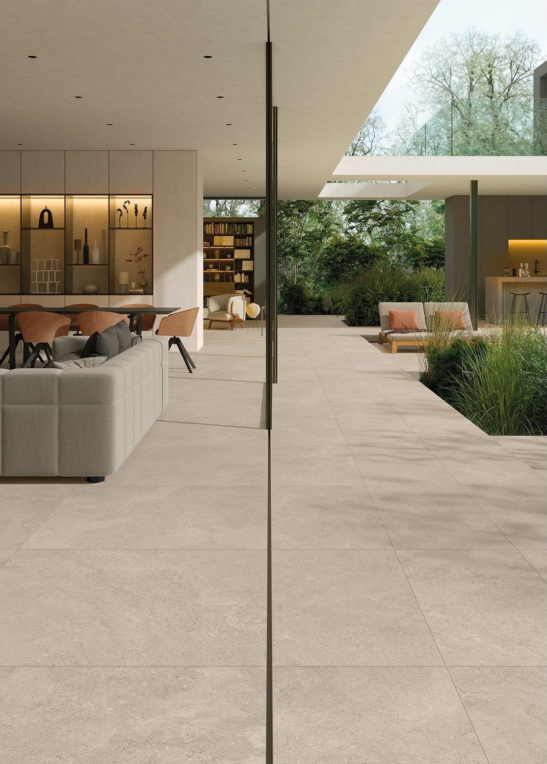 Eterea integrates seamlessly with current interior design trends , which value the purity of materials and the harmony between the natural and the contemporary. Its stone-inspired aesthetic, combined with the precision of technical porcelain , allows for the creation of serene, luminous, and balanced environments. Ideal for minimalist, Mediterranean, or urban projects seeking warmth and sophistication without sacrificing durability.