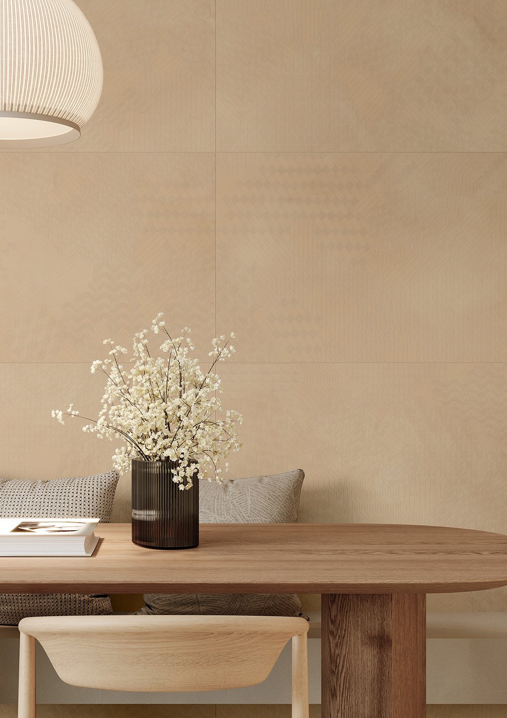 Within the refined mineral world of Calcecreta by Marca Corona, the textile-style decors add a sophisticated and highly contemporary twist. Developed in collaboration with Patricia Urquiola, these pieces feature a subtle raised relief inspired by the weave of a fabric, as if the ceramic surface were dressed in an elegant textile texture. The result is decorative without being loud: a premium design solution to elevate walls and create interiors with identity, warmth and a truly architectural feel.