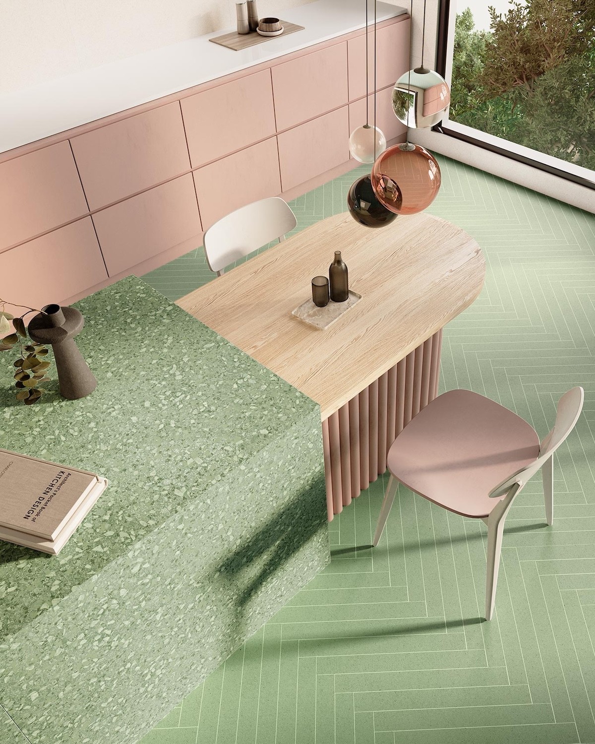 Aruma embodies the rise of ceramic terrazzo in high-end interior design . Its color palette, dynamic composition, and the artistic touch of its fragments make it an essential resource for creating vibrant, sophisticated, and light-filled environments.